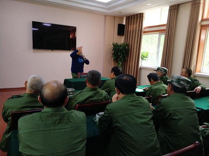 活动开始前,社工带领优抚对象手指操和趣味律动操,活跃身体,锻炼脑部反应能力。十五分钟的热身活动结束后,社工引导大爷站立起来,介绍一下自己的姓名、年龄、家庭住址、入伍时间、所在部队等。起初大爷们有点不好意思,陌生感、距离感非常强。社工建议优抚对象以一个军礼,非常有仪式感地开启讲述,然后社工以一问一答的形式,系统地引导优抚对象讲述自己的故事。在第三个优抚对象之后,其他优抚对象就渐入佳境,完整的进行自我介绍。