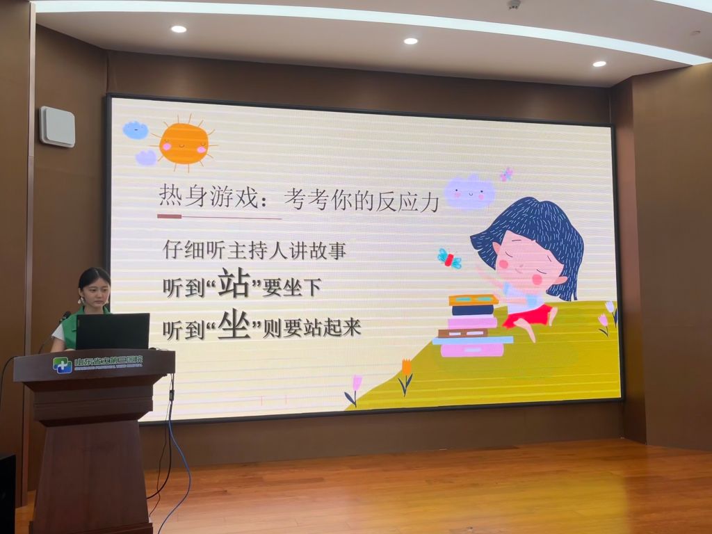 精神心理科王玥为孩子们带来了一场“心灵之旅”体验活动,通过对家族家谱知识介绍和带领大家绘制家谱的过程,为孩子们提供了了解自己家庭、探究祖辈的故事契机。在随后的“社工课堂”上,社工通过游戏的方式锻炼营员们的反应力和专注力,进一步促进营员之间的互动交流。“急救初体验”环节中,急诊科张新庆为孩子们详细讲解了创伤急救的知识和包扎、转运技巧,演示了如何正确使用绷带、纱布等急救材料。这一环节的目标是增强营员们的安全意识,提高他们在紧急情况下自救和互救的能力。康复中心刘宝祥带领孩子们一起做预防脊柱侧弯的健康操,包括抱膝转体、侧身下腰、固髂后仰、双手托天、侧向摇摆、观天倒腰、立地转身七个动作,为孩子们现场演示、评估、纠正,与孩子们积极互动,共同练习,让职工家长们意识到脊柱健康的重要性,注重身体健康,积极锻炼,强身健体。少年强则中国强,“脊”不可失,共同守护青少年脊柱健康,挺直脊梁,展翅飞翔!活动最后,社工带领孩子们开心玩游戏,赢奖品。