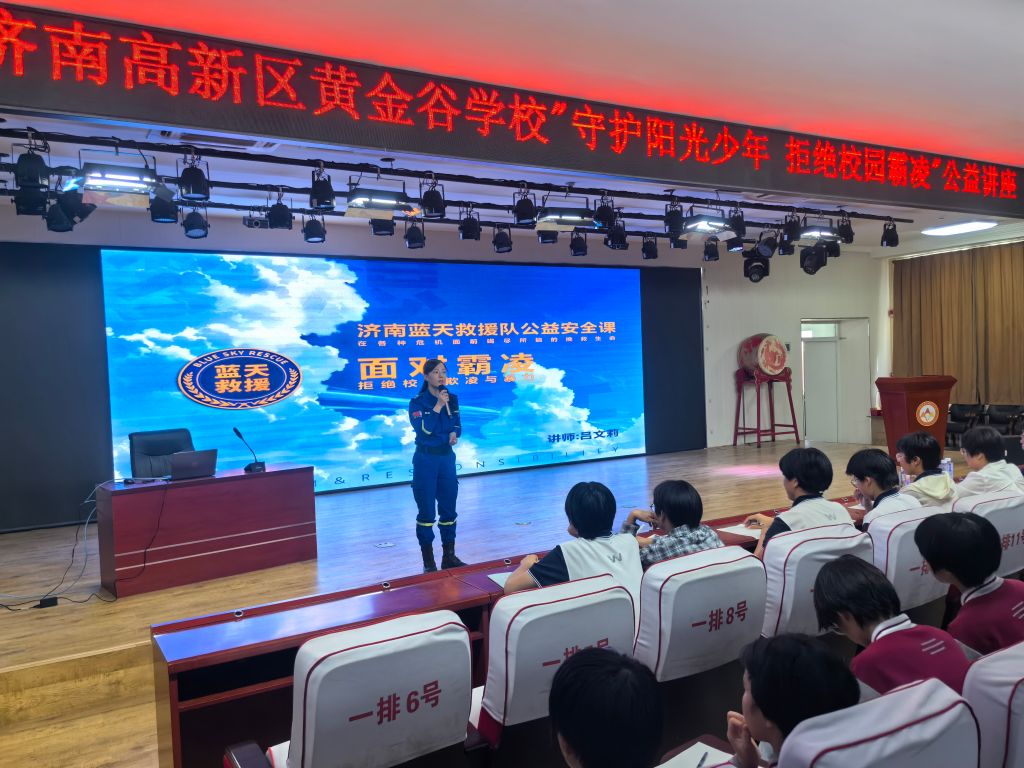 为了加强校园霸凌的防范意识,培养学生们的自我保护能力。近日,巨野河街道社工站携手高新蓝天救援队在黄金谷学校,针对全体初中生开展了主题为“守护阳光少年,拒绝校园霸凌”的讲座。