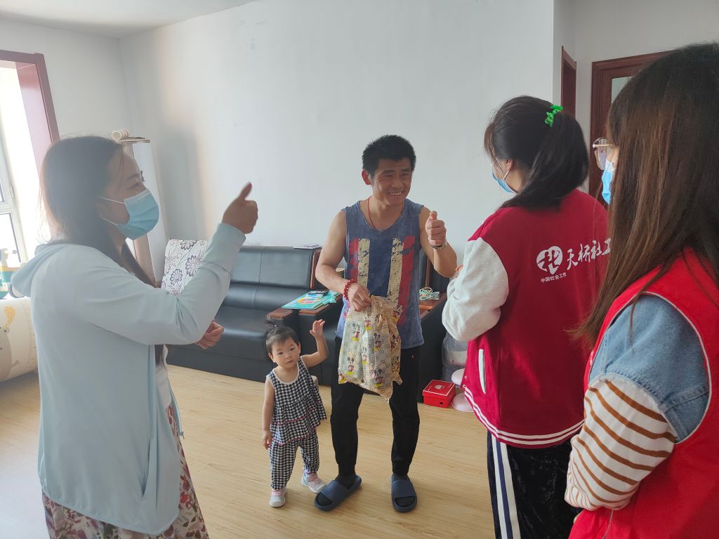 本次走访中,社工给孩子们送上了学习文具、防疫物资等节日大礼包。社工与儿童监护人亲切交谈,了解他们的身体情况以及家庭状况,详细询问孩子的身体发育情况、基本生活、就学等情况。家长激动地表示:“谢谢你们的关心和支持,让你们费心啦,我们也一定为孩子的健康成长创造良好的环境。”
