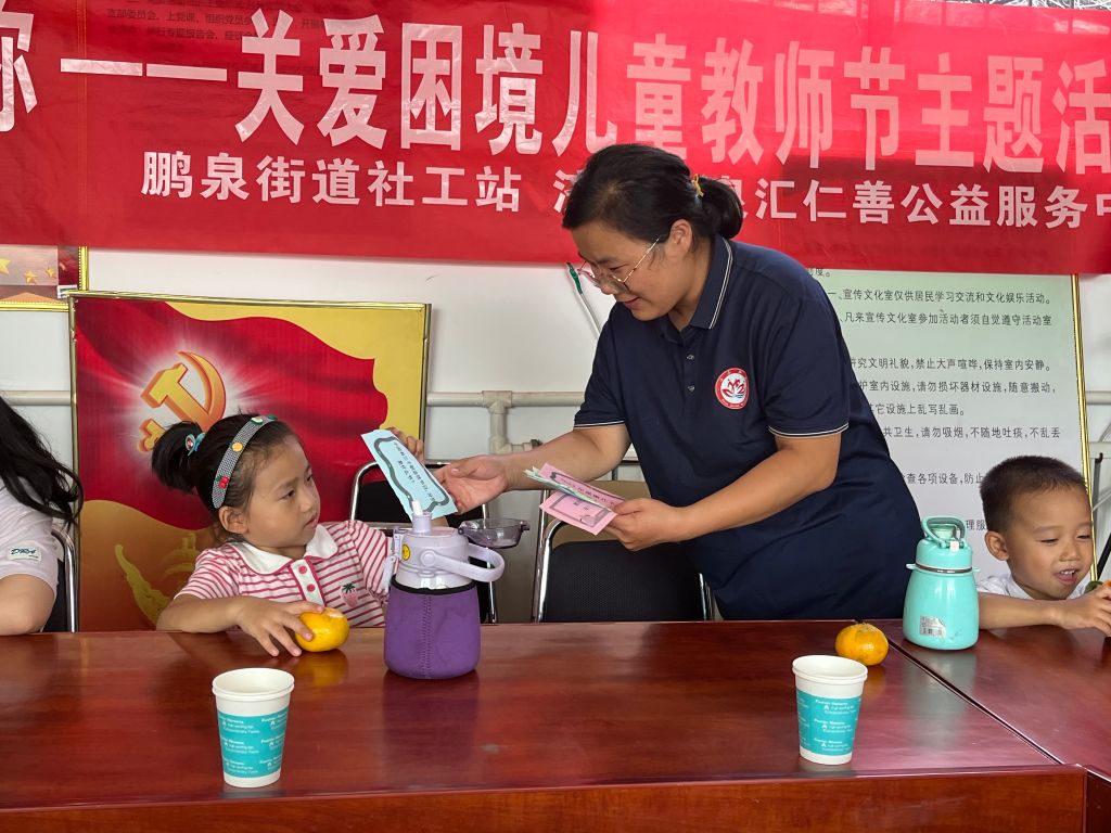 一朝沐杏雨,一生念师恩。浴着九月的金风,品味着鲜花的芬芳,伴随着丰收的喜悦,我们迎来了第39个教师节。为弘扬尊师重教的良好风尚,感谢老师们的辛勤付出和无私奉献,增进教师节传统文化传承,关心关怀困境儿童,培养孩子们尊师爱师的情怀,增强孩子的幸福感和安全感,9月9日下午,鹏泉街道社工站联合爱心志愿者在鹏泉街道大山村开展“师”情花艺 感恩有你——关爱困境儿童教师节主题活动。
