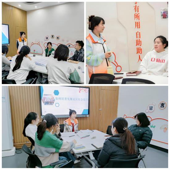 日常反馈聊想法。日常反馈是最能直接反映服务对象情况的方式,站长李舒每次都会在课堂结束之后,主动询问社区工作人员对本节课的掌握程度、存在困惑以及想要学习的课程等内容,社区工作人员主动分享自己见解或意见,大家纷纷表达了外出学习的想法,认为这样可以直观、清楚的了解其他社区的先进经验,然后运用到工作中,社工表示会尽量争取外出学习机会。