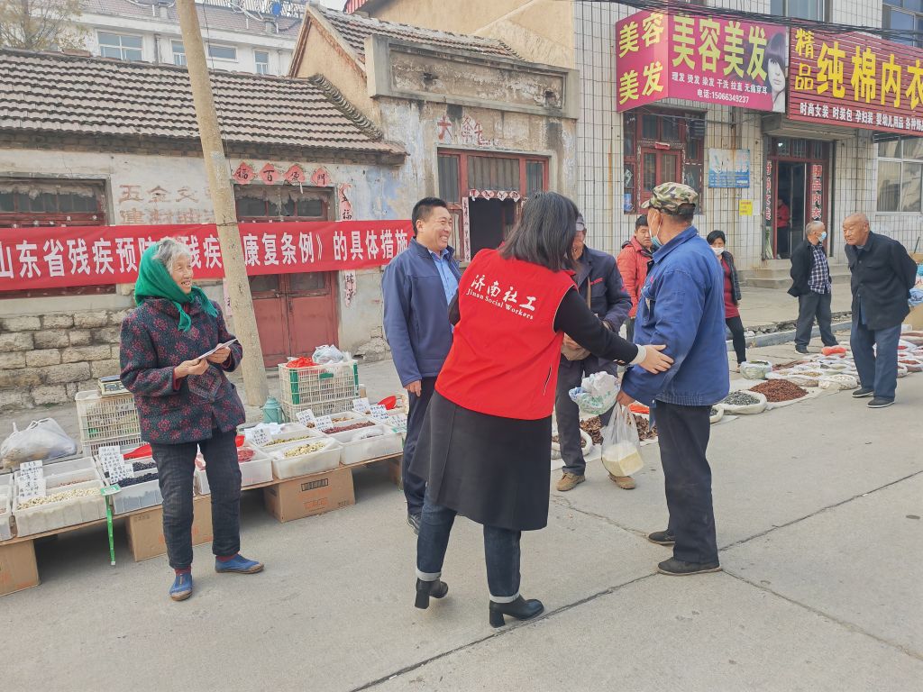 为深入践行以人民为中心的发展思想,大力弘扬人道主义精神,保障残疾人平等参与社会生活,颜庄街道社工来到颜庄村大集,深入群众,落实《山东省残疾预防和残疾人康复条例》学习宣传工作,普及残疾预防知识,提升人民群众的残疾预防意识,广大群众积极参与,反响热烈。