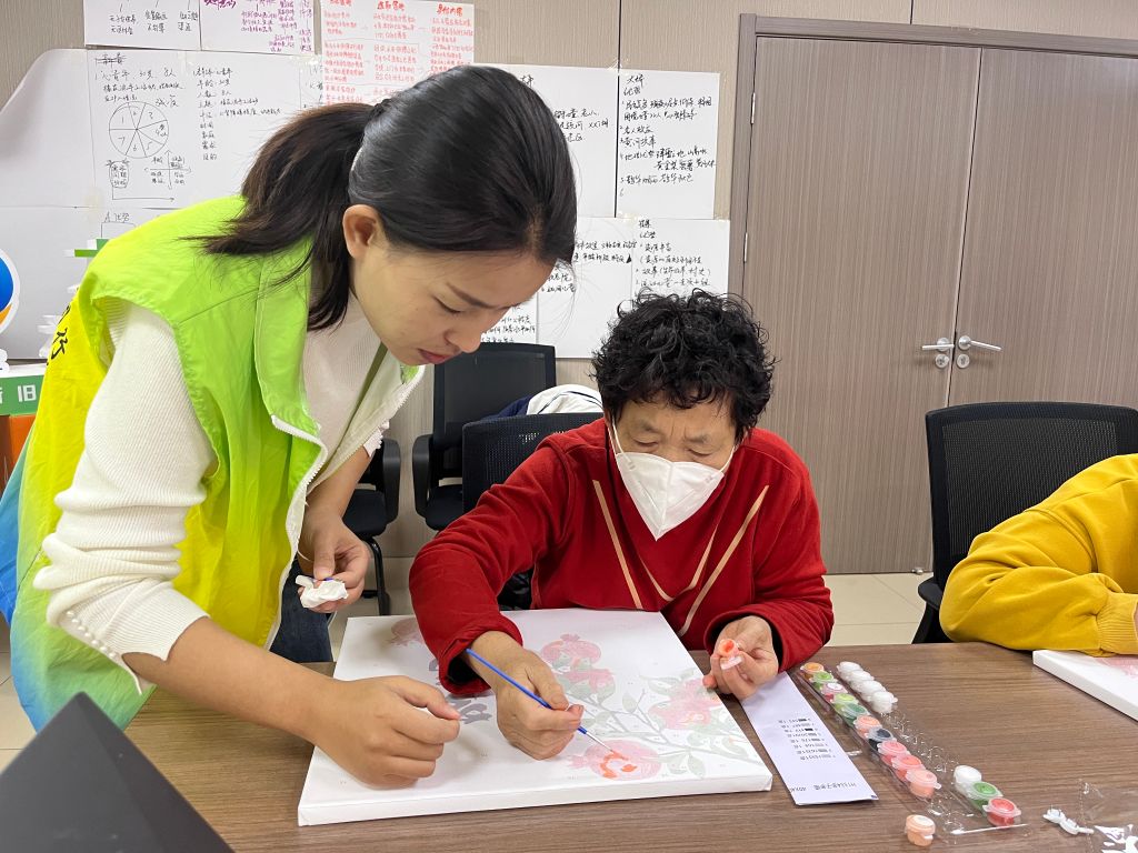 由于部分组员们年龄较高,考虑到大家的绘画水平不一,本节小组活动社工选用难度较低但具有较强装饰性的数字油画作为年画材料。随后,社工向组员发放材料包,从颜料的使用到涂色的技巧,一边演示一边耐心给大家介绍。虽然是第一次接触数字油画,组员们刚开始下笔时还感到有些困难,但在社工的鼓励下组员们逐渐沉浸在自己的艺术创作中。在认真填涂与仔细勾勒中,一幅幅鲜活灵动且富含新年美好寓意的挂饰呈现在大家眼前。看着自己亲手画出来的作品,组员王阿姨尤为开心,表示我们画的不仅仅是年画,也是对新一年生活的美好憧憬!