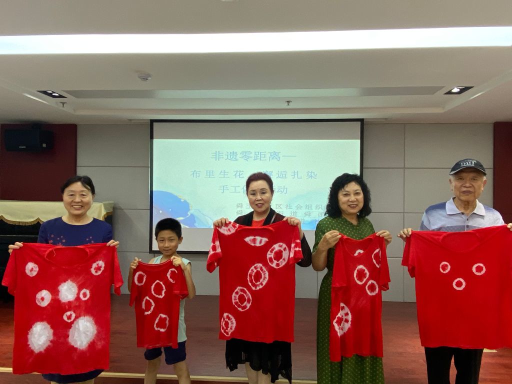 扎染是中国民间传统而独特的染色工艺,同时也是中国非文化遗产之一。为发扬传统文化的魅力,继承优秀传统文化,和非遗传承来一场零距离的接触,8月1日,舜玉路街道社工站联动舜玉路街道社区社会组织联合会于舜函社区文明实践活动室开展了“非遗零距离—布里生花·邂逅扎染”手工扎染创意制作活动。活动邀请了社区居民、志愿者20余人参加。