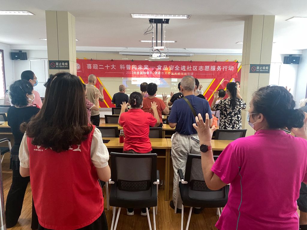 此次活动的开展,在原先饮食安全的基础上加入了健身方法和急救常识,让居民们不仅吃地健康,还动地快乐,从而有效促进社区居民身体素质和健康水平的提升。天桥东街社工站将继续为群众提供更多优质服务,以安全和谐的环境迎接党的二十大胜利召开。