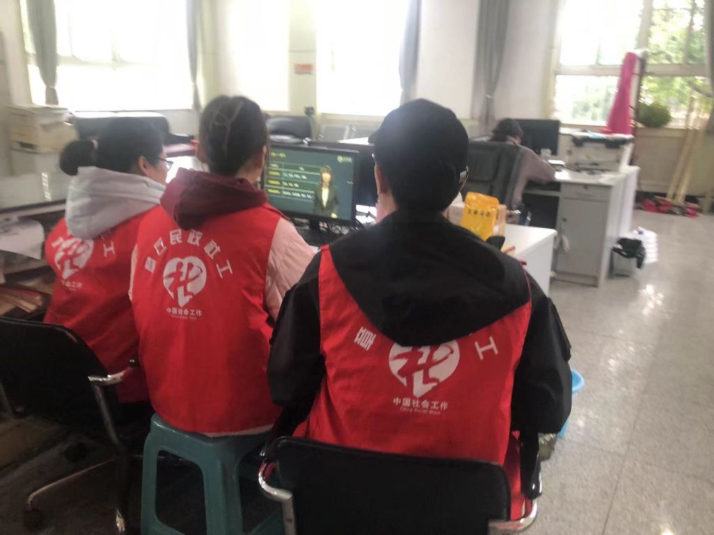 视频学习结束时后社工们结合生活中的具体案例中展开热烈的讨论,分享个人的经验和在工作中遇到的问题。结合学到的会谈技巧进行模拟训练。
