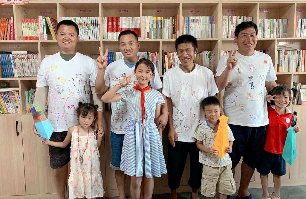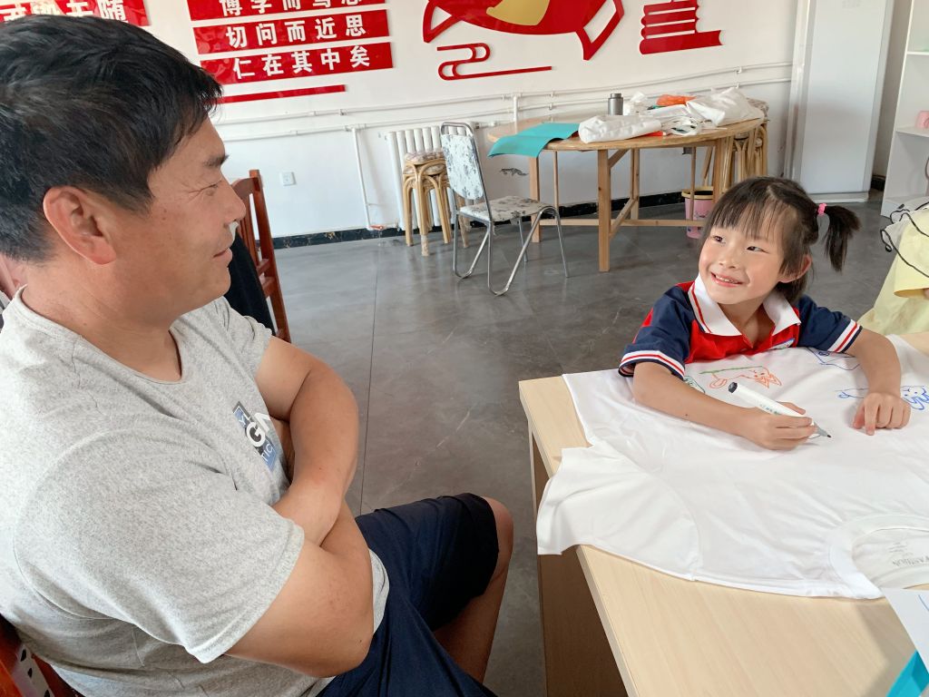 父亲!您是高山,我愿做您身上绿色的植被,让这四季常青的衣衫为您遮风避寒。活动在如火如荼的进行中,有的小朋友看着自己的父亲露出稚嫩的幼牙,尽力画出自己心中那伟岸的父亲形象;有的小朋友要把自己的小手画在自己爸爸的大手旁边,希望一辈子牵着爸爸的手;有的小朋友和爸爸合作绘画了一幅特属于他们的画作。在现场,四位父亲也在热烈的交谈并且“显摆”着自己的衣服,“这件衣服,给我多少钱也不卖,这可是无价之宝啊”“我明天就穿着去上班,让别人都看看我女儿给我画的衣服”“这件衣服我可得收藏起来,等我老了之后再拿出来看看肯定别有一番滋味”。