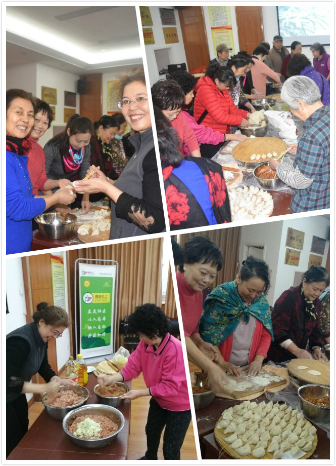 之后开始煮水饺,热腾腾的水饺出锅啦!社区居民一起吃饺子,有些阿姨们手里包着水饺,嘴里吃着水饺,笑的不亦乐乎。大家一起提前过冬至,享受传统节气带给我们的快乐,居民们吃完了,社工们将打包好的水饺让居民们带给那些属于弱势群体的邻居。最后在相互留影下结束了今天的活动。