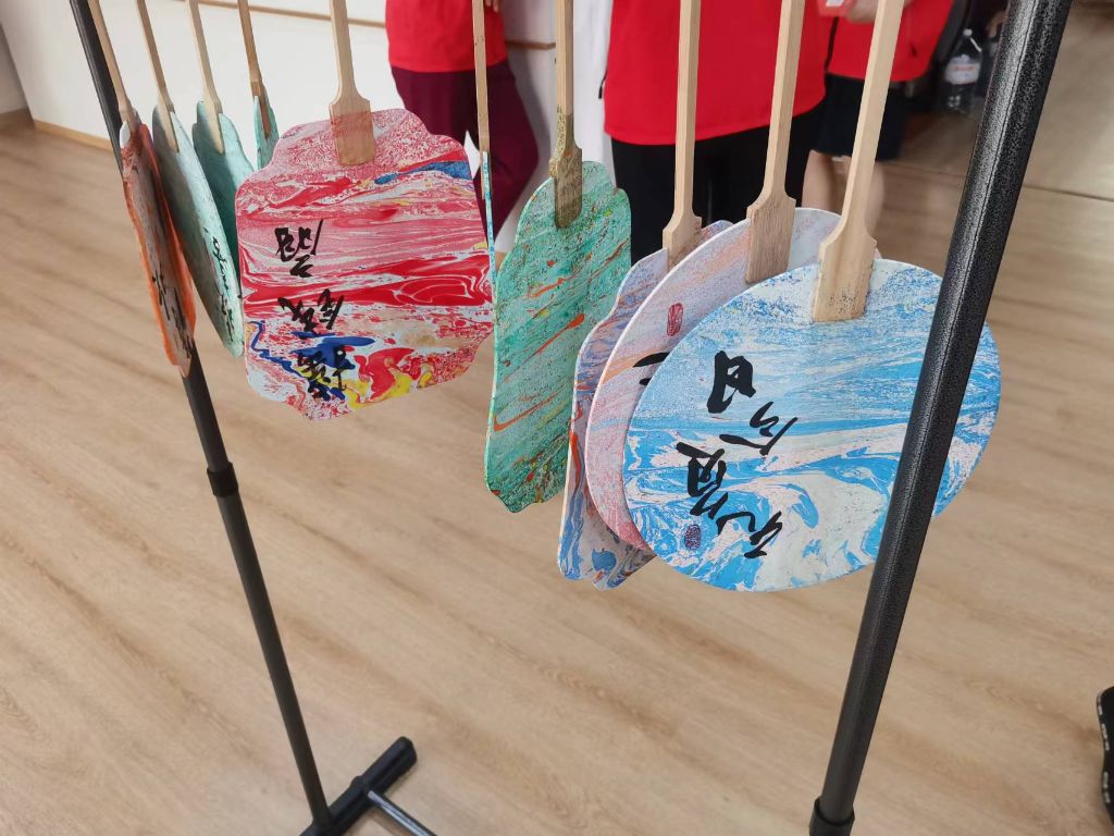 活动开始,社工首先向老人们介绍了漆扇的历史背景、文化意义以及制作过程,让老人们对这项传统工艺有了更深的了解。随后,在社工的指导下,老人们开始动手制作漆扇。从选择颜色、稀释漆料,到将稀释后的漆滴入水中形成美丽的图案,再到将扇面轻轻浸入水中,让漆料附着在扇面上,每一步都充满了挑战和乐趣。在社工的悉心指导下,老人们充分发挥自己的想象力和创造力,制作出了一把把精美的漆扇。他们的作品各具特色,有的色彩鲜艳、图案精美;有的则简约大方、充满韵味。老人们手持自己亲手制作的漆扇,脸上洋溢着满足和自豪的笑容。