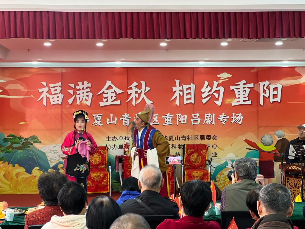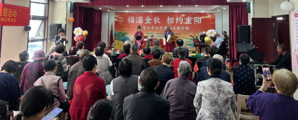 佳节重阳,秋风有信。为弘扬爱老、敬老、助老的传统文化,展现唐冶街道优秀社区社会组织唐冶追梦吕剧团的组织风采,10月23日,唐冶街道社工站链接山东青年政治学院青爱晚志愿服务协会共同协助华夏山青社区举办吕剧专场演出,与社区居民共享传统艺术魅力,共度重阳!