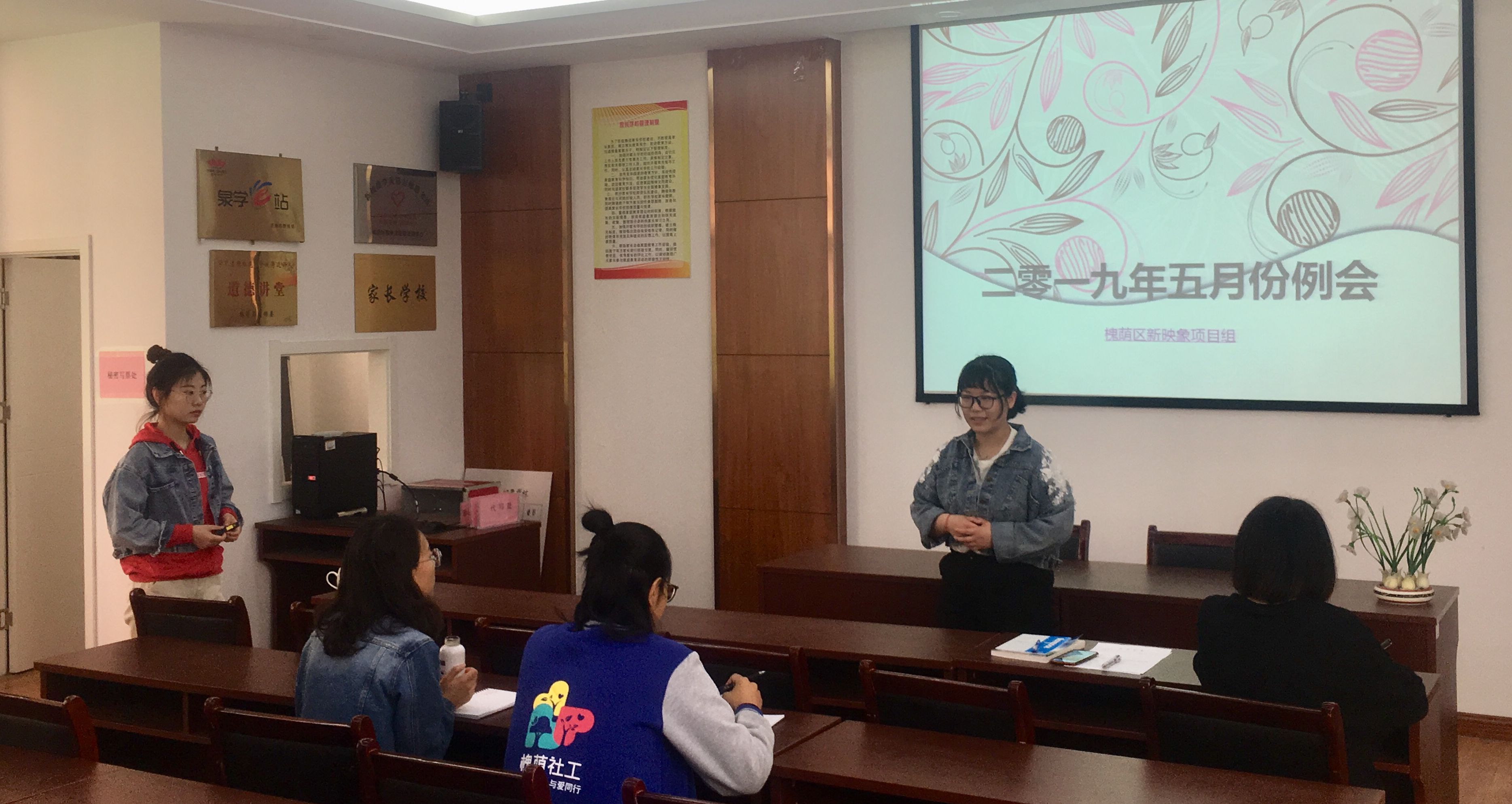 5月6日上午,槐荫区新映象社工项目组在新世界阳光花园社区居委会会议室召开了五一小长假后的五月份第一次周例会。项目组全体社工和山东建筑大学实习生吴梦恩、郑文娟参加了会议。