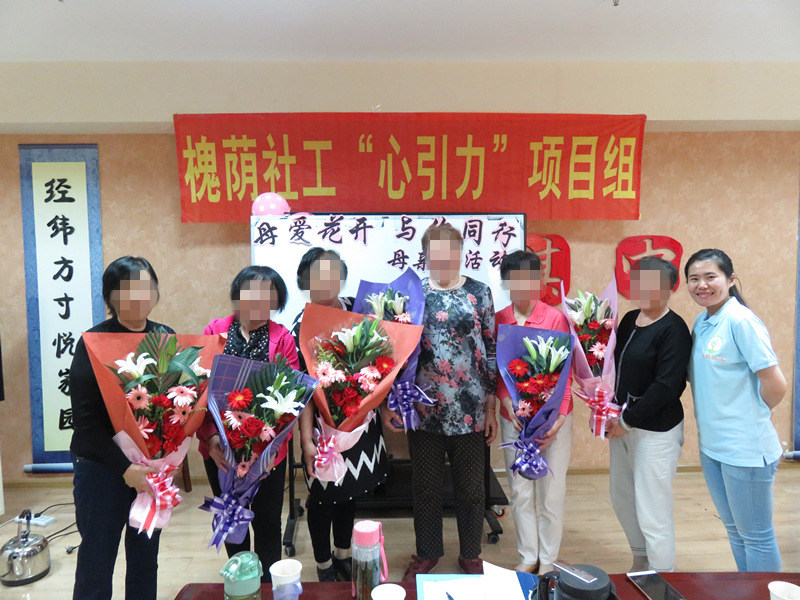 此次活动是16年的第二次小组活动,历时一个半小时,活动目的在于庆母亲节的同时讨论今后活动方向。活动开场,社工就活动目的和安排做了说明;小组成员互动环节,吃水果游戏活跃全场;讨论时间,社工引导小组成员就今后活动频次、活动方式、入户形式,以及新成员接纳和融入问题进行讨论,民主决策;感恩母亲,感念亲情,社工引出母亲节话题,并向服务对象敬献鲜花与祝福;活动最后,社工引导小组成员表达母亲节感受,并对活动进行现场评估。
