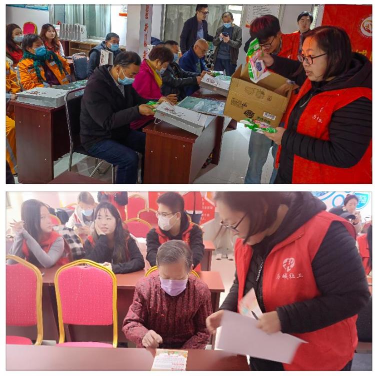 启动仪式中,济南市历城区洪苑社区主任翟明艳、济南市十方社会工作服务中心副总干事及山东财经大学青年志愿者代表李星志发表讲话。秉承社工站+志愿者 服务群众心连心的宗旨,以“奉献爱心、服务社会、社工有爱,志愿同行”为主题,进一步宣扬社工服务精神,引导广大青年广泛参与志愿服务。启动仪式结束后,社工与志愿者共同为老人们举办了健康知识讲座、清洁社区环境卫生、反诈知识宣传等一系列志愿服务活动。
