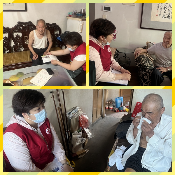 最近一周济南天气持续高温,严重危害老年人身心健康,为保障辖区内独居高龄老人安全度过夏天,6月20日,在市中区民政局和街道办事处的领导下,四里村街道社工站全体社工采取电话回访、挨家挨户上门走访等形式,了解本地老人们目前生活状况并帮助他们解决一些实际困难,送去市中民政工作的清凉问候和关爱。
