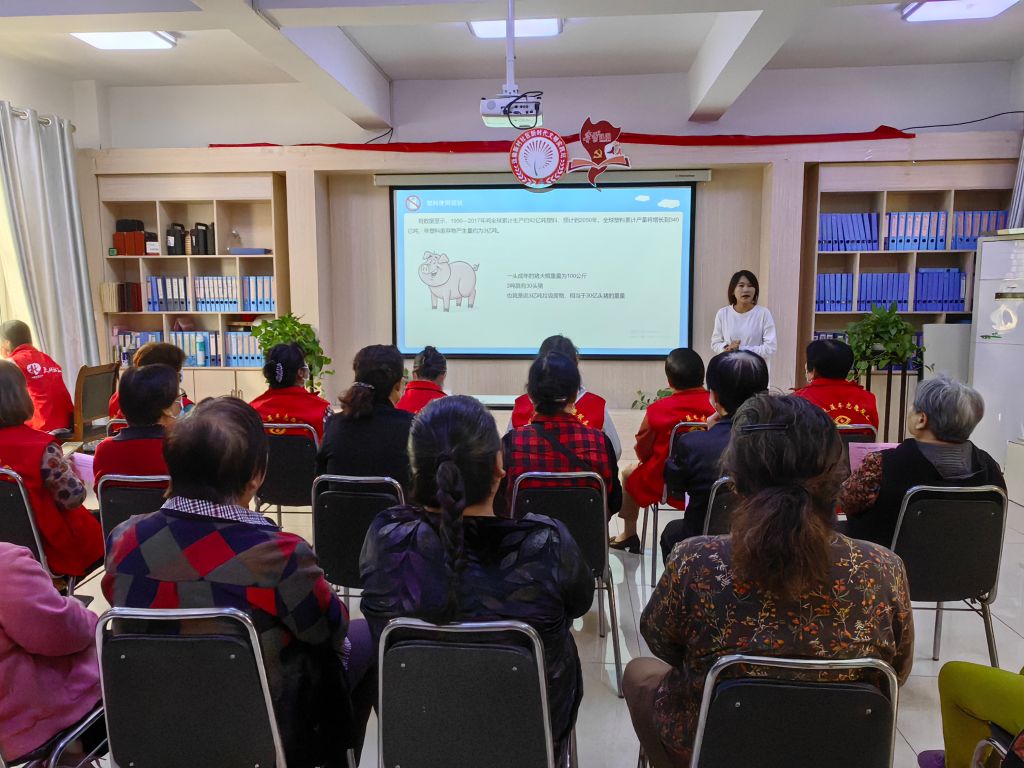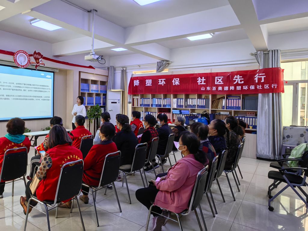 活动开始前,社工站社工对减塑降塑基本情况以及活动理念进行简单的阐述,并向社区居民发放了倡议书。活动中专家郭教授用生动的案例深入浅出地讲解使用普通塑料袋的危害,科普了减塑降塑的重要性。
