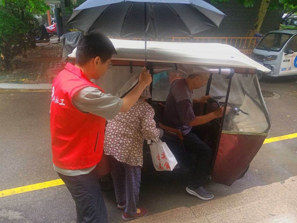 爱心筑桥,雨中温暖传递——北园街道社工站守护老人出行安全