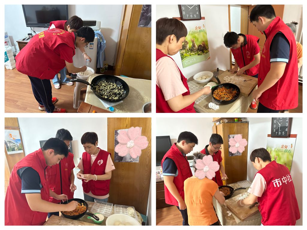 家住乐山小区社区的陈奶奶,今年70岁,为辖区低保家庭,陈奶奶身患癌症,丧偶独居。社工在上门开展服务时了解到,陈奶奶时长感到孤独,很怀念一家人在一起吃饭时热闹的氛围,为了给陈奶奶带去心灵上的慰藉,让她感受到温暖和关爱,满足她小小的愿望,社工链接社区志愿者,策划了一场“爱心水饺”活动,实现了老人的“微心愿”。