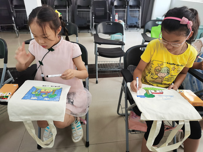 做好垃圾分类,保护生态环境,垃圾分类宣讲结束后,双报道单位的工作人员为孩子们精心准备了DIY手绘环保袋,让孩子们画出理想中的幸福家园。孩子们发挥想像,通过垃圾分类改造不良环境,实现心目中的美好家园。不一会,一幅幅画卷在孩子们的笔下诞生。