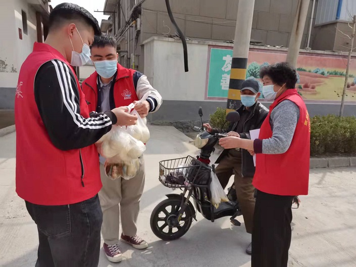 在助餐活动中因为有一些老人活动不便,我们便在村里的助餐志愿者的带领下去到这些老人的家中,给他们送去饭菜。