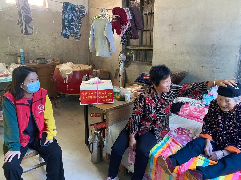 9月28日上午,社工一行来到西街村百岁老人家中。老人的女儿带我们进屋看望老人,一进门老人就和我们打招呼。出乎我们的意料,老人的精神状态很好,耳朵也不背。我们和她说话她能随声附和着。我们和老人的女儿谈论着老人的身体情况,老人在旁边说,现在的生活好了,以前真是太苦了。听着儿女讲述着老人过去为家庭、为社会奉献了青春热血,做出了重要贡献。我们叮嘱老人继续保持乐观开朗的心态,保重身体,同时嘱咐其家人好好照顾老人、孝敬老人,让老人安享晚年,并给老人送上了节日的慰问品,祝愿老人健康幸福。