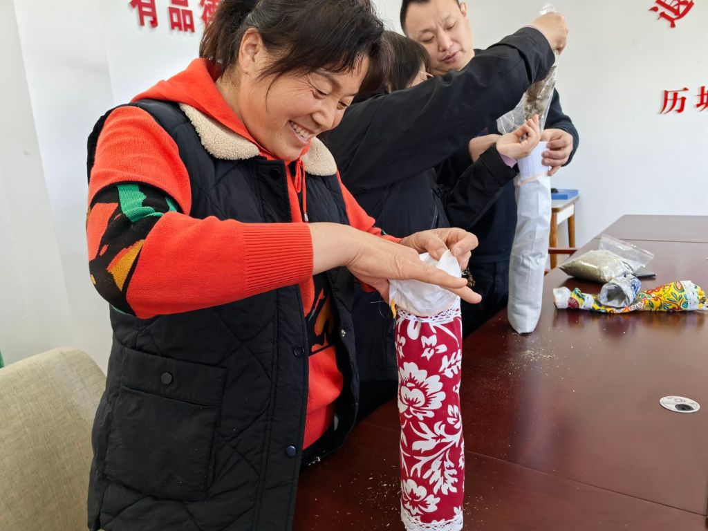 老人们围坐在一起,一边认真聆听,一边跃跃欲试。在社工的耐心指导下,他们开始动手制作。有的老人手法熟练,很快就做出了一个漂亮的艾草枕;有的老人则在尝试中遇到了一些困难,但在社工和其他老人的帮助下,也逐渐掌握了技巧,整个过程中,大家相互交流、相互帮助,现场气氛十分融洽。