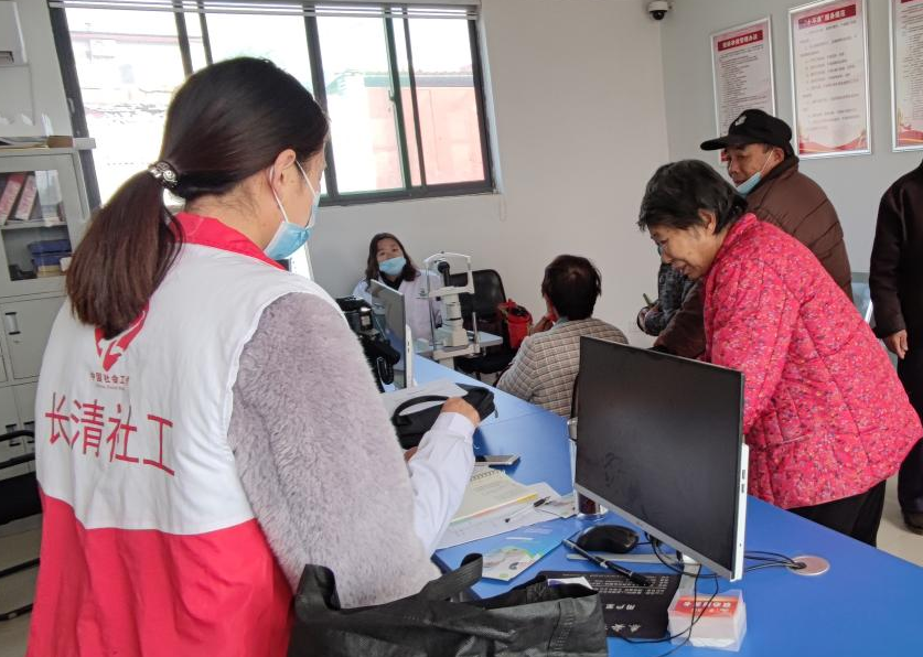 活动前,社工和村委通过宣传栏贴通知、打电话通知等方式告知辖区居民此次公益活动,居民们都很愿意参加。前来检查的居民在社工和村委的组织下,自觉排队,有序检测,义诊现场万德社工站为居民们做好登记。此次眼部检查内容包括眼压、裸眼视力、眼底检查等。检查过程中,医生耐心细致地解答了老人提出的眼部疾病方面的问题,为每位老人讲解保护眼睛健康的知识,针对老人眼部疾病不同问题,不同情况,医生有针对性的建议每一位眼部患者到专业医院进行更深入的检查,并结合筛查的实际情况提出了较为专业的治疗或手术方案,以便及早治疗眼病。