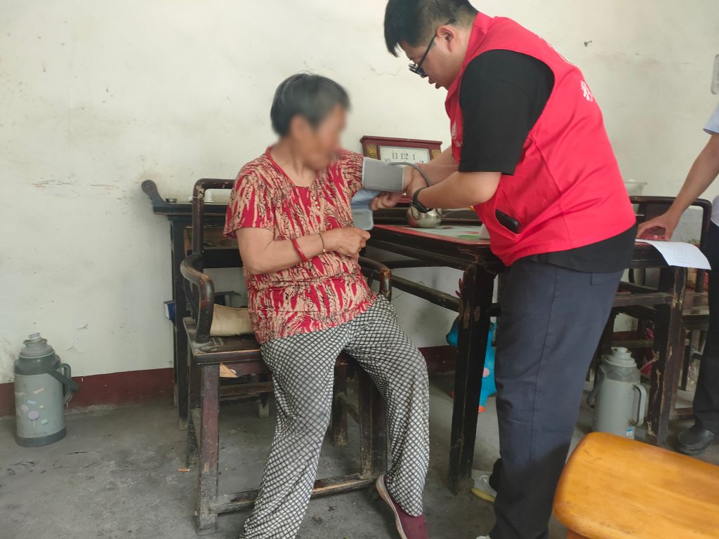 慰问过程中,社工在与家长谈心、拉家常。深入了解儿童的身体情况和家庭状况,并送上慰问品和学习文具,鼓励孩子要自立自强,克服困难,积极面对生活。在听取他们的意见与想法后,社工针对其面临的实际生活困难,为其详细解读民政相关惠民政策。随后社工运用“1+1惠彩服务包”为家中长者进行健康体检,并建立健康档案。
