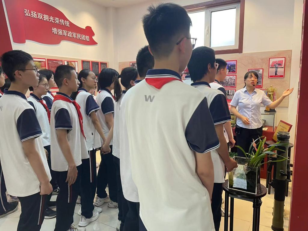 活动伊始,学生们参观了王舍人街道退役军人服务站荣誉室,跟随着宣讲员的讲述,认真聆听了英雄故事,感受到了那个时代的烽火岁月。通过讲解员的生动讲解,学生们对革命历史有了更深刻的理解,更加坚定了同学们听党话,跟党走,用青春谱写奋斗篇章!