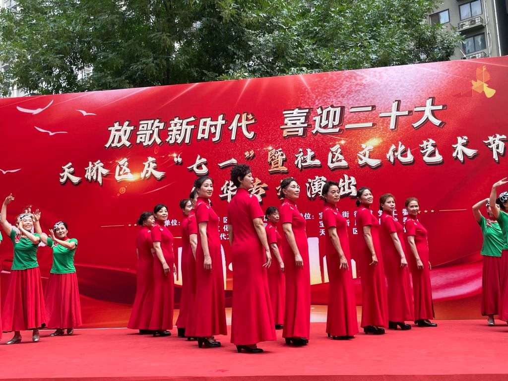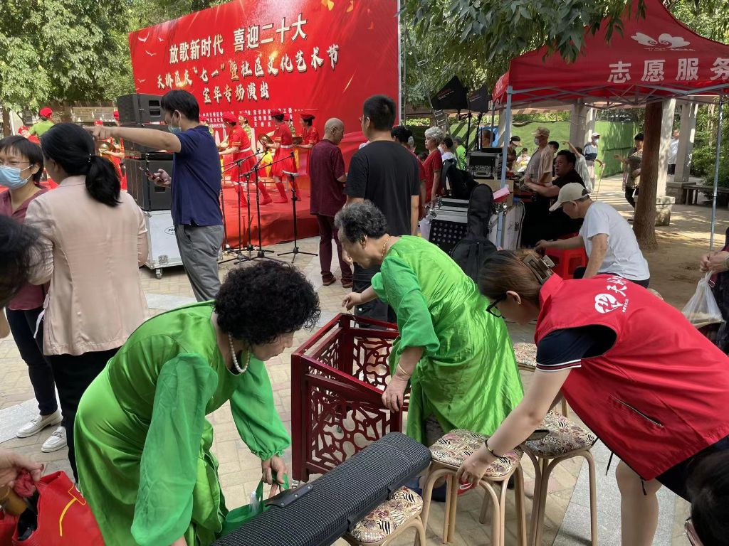 活动中,社工为志愿者准备好演出的物料,给与他们上台前的鼓励,让每位志愿者都绽放出自信的光芒。随后演出在击鼓表演中拉开序幕,志愿者情绪高涨,动情演绎着对党对祖国的热爱。小品表演《拉家长》欢呼声此起彼伏;最美夕阳红队的《我和我的祖国》轻舞飞扬,还有长笛演奏《我的中国心》震撼人心。虽然表演形式不同,但志愿者们都极尽所长,用笑容和热情表达着对党的热爱和对美好生活的向往。