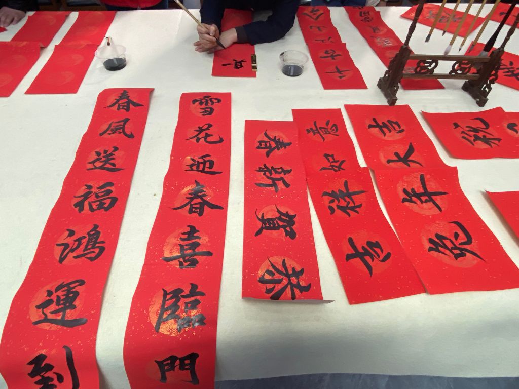 活动现场,笔墨纸砚一应俱全。横折竖勾、点提撇捺,居民凝神聚气,挥毫泼墨,将对新一年的憧憬和祈愿融入到笔墨之间。饱含祝福的笔墨跃然纸上,一副副寄托着美好祝福的福字、春联新鲜出炉,整个活动现场翰墨飘香,洋溢着欢乐祥和的喜庆氛围,为即将到来的春节增添了浓浓的年味儿。