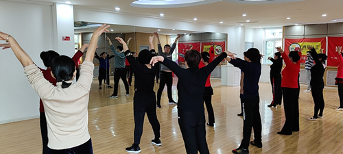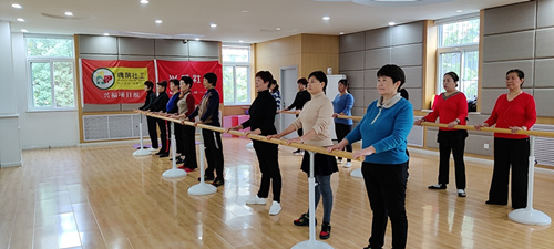 活动伊始,社工进行体温测量及活动签到;紧接着社工朗读《自愿参加活动安全责任书》中的内容,引导参加活动的小组成员签字确认;接着济南市歌剧院舞演员李老师引导小组成员进行拉筋活动,组员们把腿放到把杆上,不少组员叫苦不迭,在李老师的正确引导下,缓解了不适,正确的进行拉伸运动;随后李老师从基础的兰花指、山膀、托掌、按掌、顺风旗等形体口诀教起,小组成员认真跟着学习形体动作,虽然动作笨拙但是认真的精神值得称赞,在一曲《声声慢》中,李老师带领小组成员回顾本次学习的身韵组合;活动最后在小组成员对老师的感谢中结束。