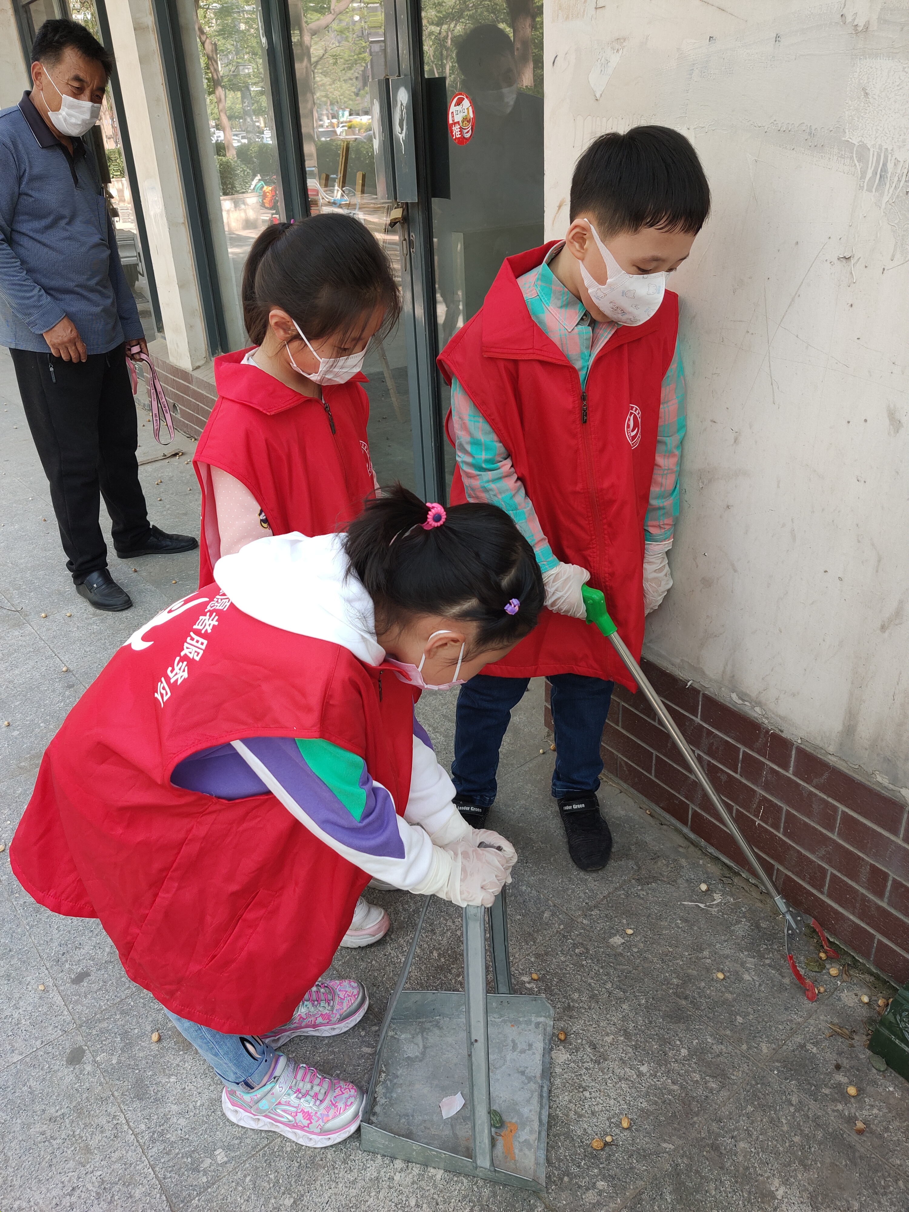 活动伊始,社工首先讲解活动流程及注意事项,强调个人安全并发放防护用具,口罩、手套等。紧接着,秦显显社工向小志愿者门讲解关于垃圾分类的相关知识,小志愿者们积极回应并提问。在学习了相关知识之后,小志愿者们向辖区内沿街商户开展爱国卫生宣传活动,宣传垃圾分类,发放倡议书、宣传册等,营造人人知晓,人人参与的良好氛围。最后,小志愿者们学以致用,在沿街及小区内部进行垃圾清理并分类,切实改善社区环境。
