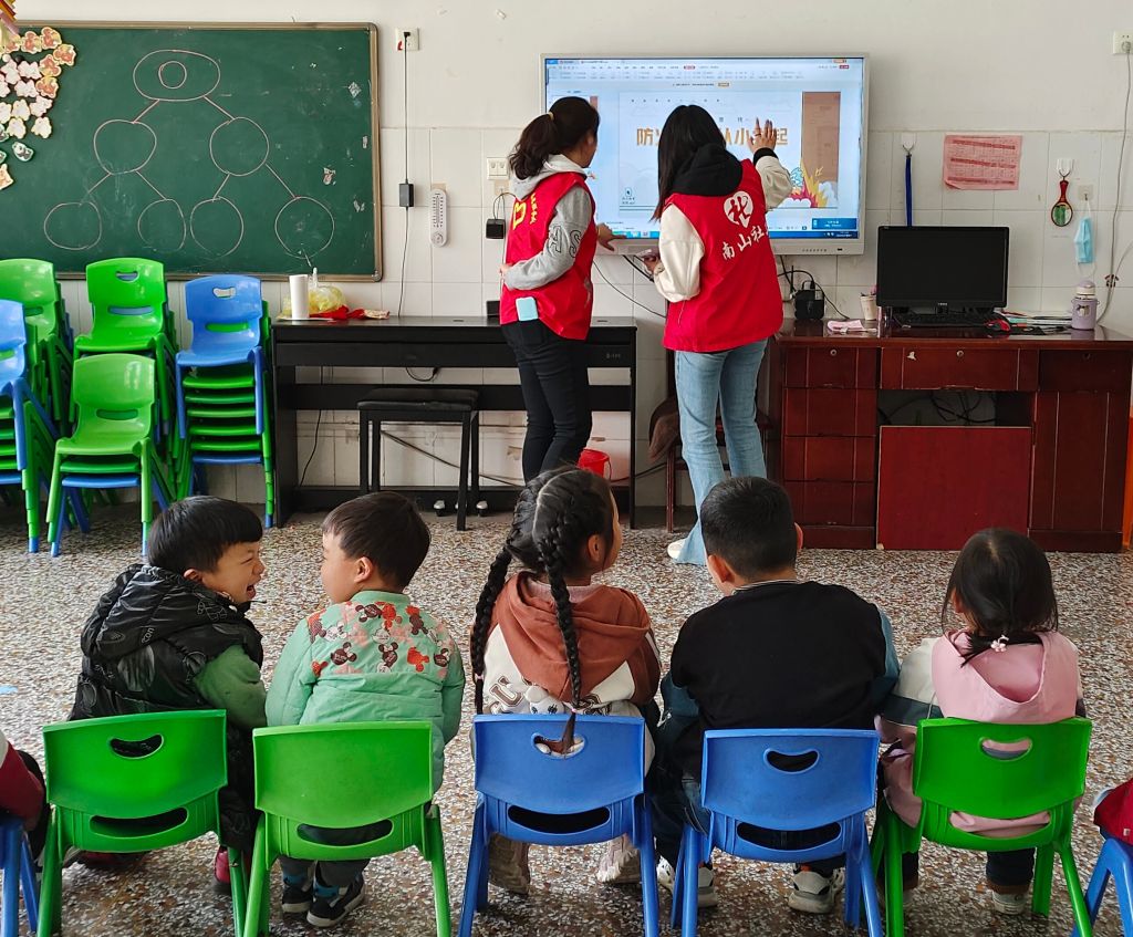 活动伊始,社工与儿童一同回顾第一节、第二节小组活动内容,儿童做出积极回应。其次,本节小组活动围绕“火”展开讲解,志愿者以火灾危害为切口,通过游戏互动、趣味问答等环节,给儿童科普校园防火常识、灭火常识、火场逃生常识、安全提示标志识别等知识,并强调火灾的破坏性,提醒儿童不玩打火机、火柴、不燃放烟花爆竹等危险物品。社工还带领儿童诵读报警歌谣、火场口诀,提高儿童消防安全意识及自救防范意识,引导儿童主动思考面对不同紧急火情时应该怎么做到自救与互救。