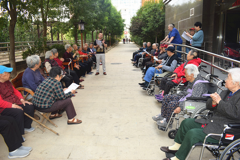 红了花,绿了叶,夏日在不知不觉中到来,老人们越发喜欢在院子里晒太阳。5月16日上午,阳光正好,暖风不燥,悦银龄养老社工项目组在福利中心的大院里开展了“夏日暖阳,老歌鲜亮”合唱活动,老人们你拉我、我推你,一同说着笑着围坐在了一起。