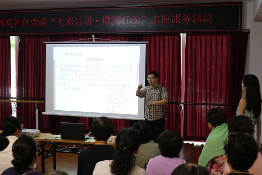 活动中,市口腔医院的专家通过视屏课件的方式向老年志愿者们形象生动的讲解口腔防治知识和健康常识。在健康讲座过程中志愿者们与医院专家积极互动,增加了对口腔健康知识的了解和掌握,讲座结束后有需求的老年志愿者们还参与了专家的义诊,专家对他们所患的口腔疾病进行了简单的治疗。