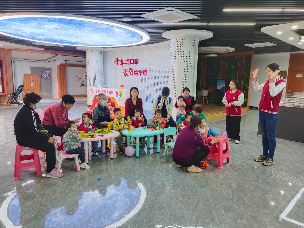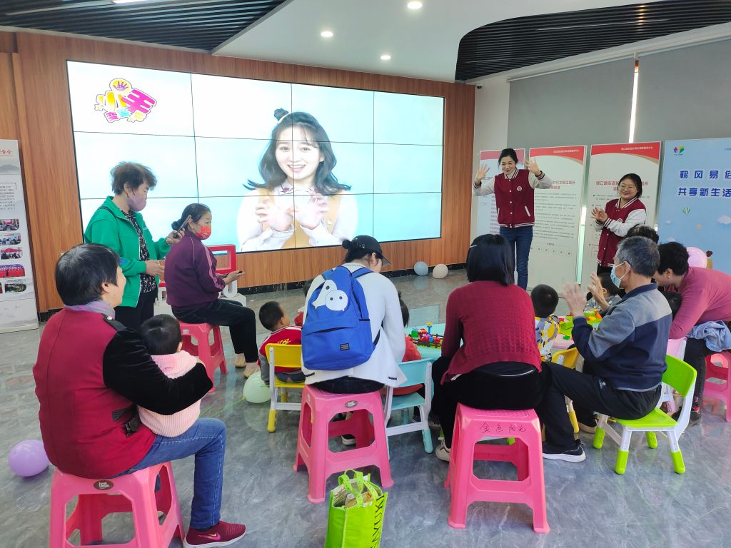 上午9点30分,辖区内小朋友在监护人的陪伴下陆续来到现场,并在社工的组织下有序签到。签到完成后,社工首先带领大家互相介绍促进组员之间的了解,随后介绍本节小组活动内容。活动分为两场,上半场社工带领小朋友学习手指操,发现自己的小手,了解小手的构成和功能,学会更好地运用自己的小手。下半场进行积木搭建,比比看谁的积木搭建最高。