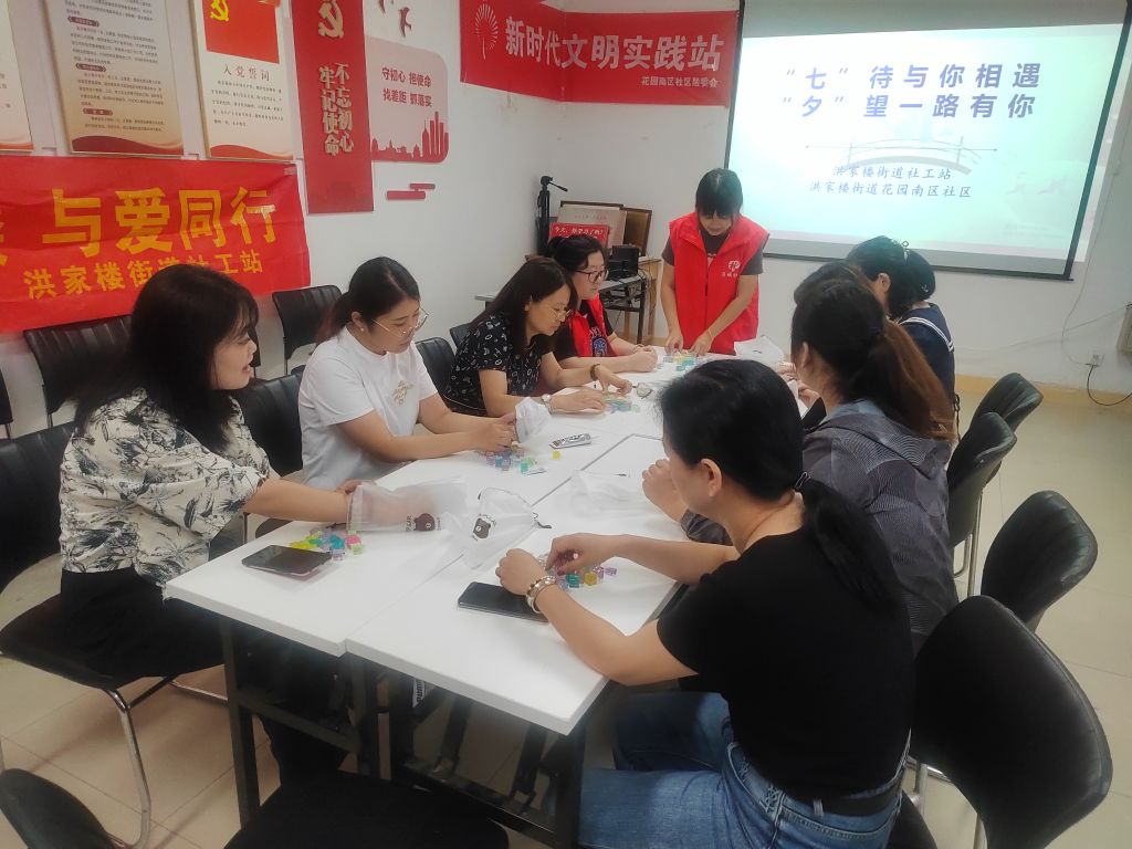 “七夕今宵看碧霄,牛郎织女渡鹊桥;家家乞巧望秋月,穿尽红丝几万条。”在这“七夕”来临之际,为深入践行社会主义核心价值观,弘扬中华民族传统文化,洪家楼街道社工站联合花园南区、洪家楼街道社区社会组织联合会共同开展了“七”待与你相遇 “夕”望一路有你,七夕手机支架DIY活动。