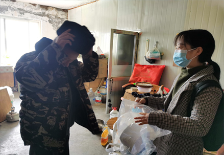 活动中, 志愿者给辖区内空巢老人送上棉衣、棉帽、围巾等防寒物品和鸡蛋等食品,把这满满的心意、满满的爱传递到需要帮助的空巢老人手里,老人穿上合适的衣服,露出满足的笑容,小志愿者的到来也为老人的家中带来了久违的欢笑,志愿者们与老人话家常聊长短,送温暖,关爱暖人心。