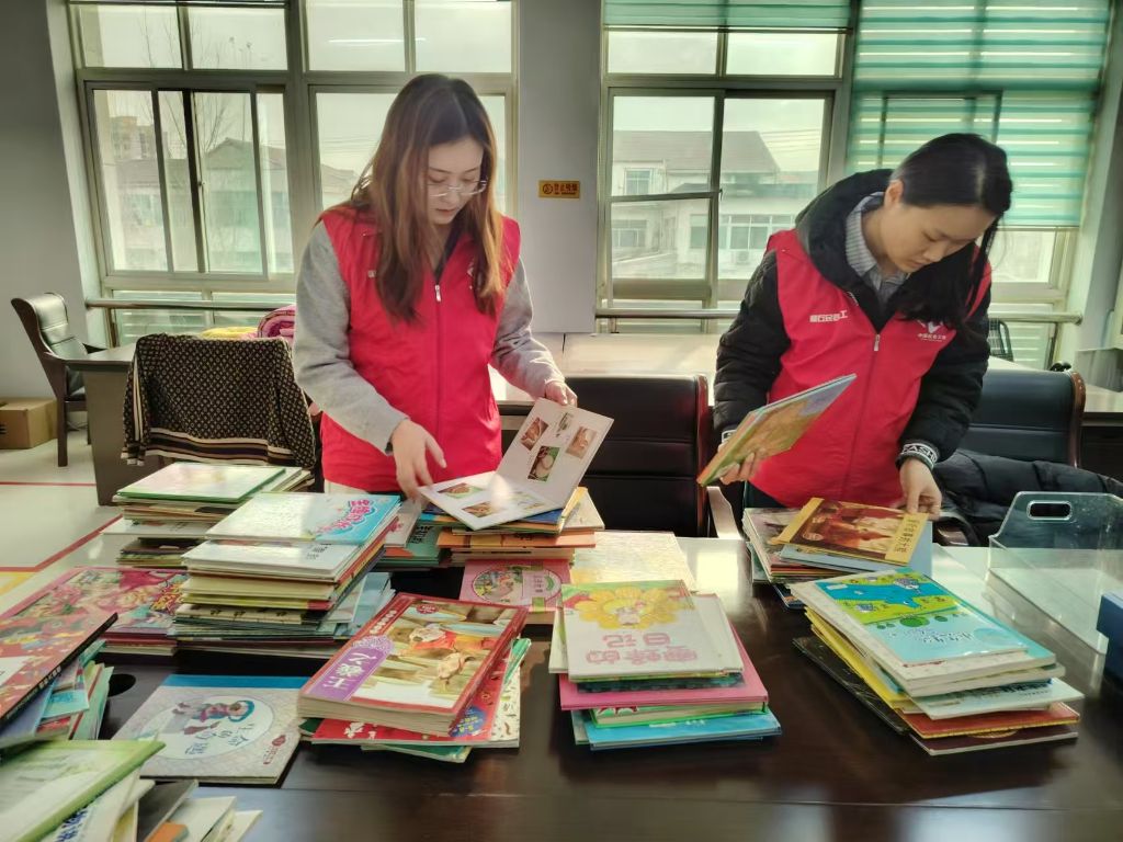 精心整理。社工对捐赠的绘本进行了分类、整理与消毒,确保孩子们能够阅读到健康、完好的书籍。