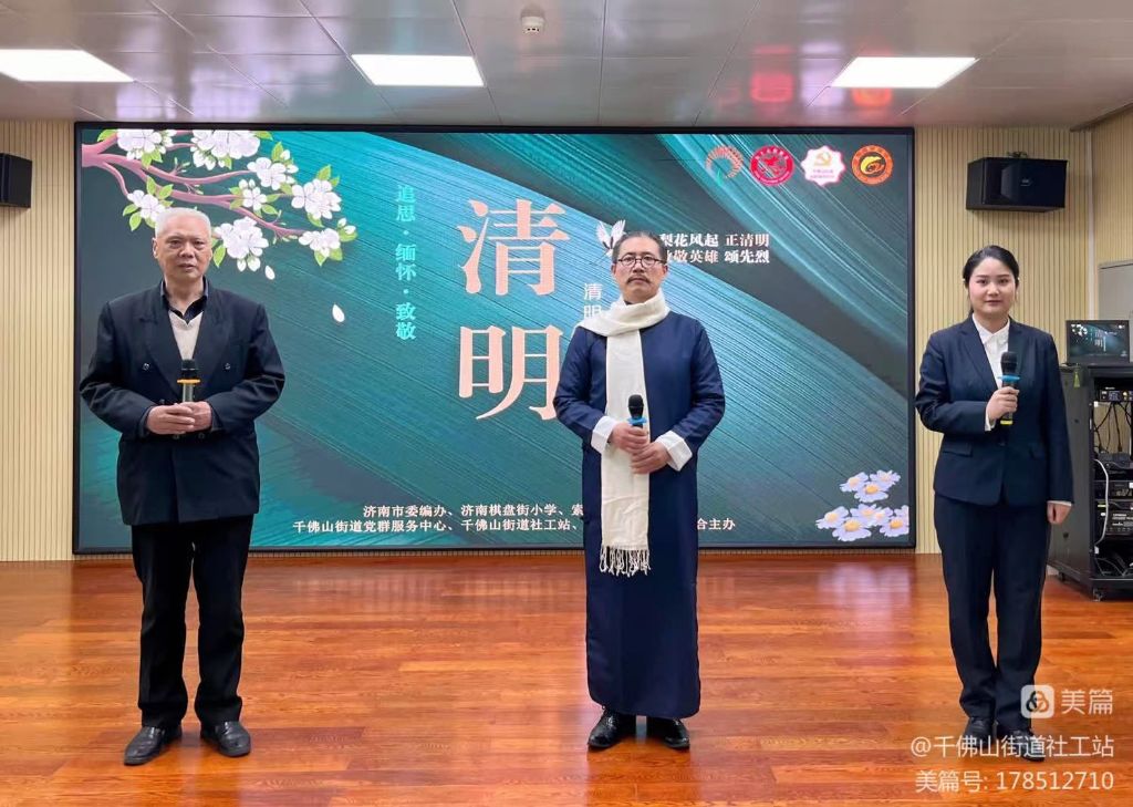 为了缅怀革命先烈,清明节来临之际,千佛山街社工站联合千佛山街道党群服务中心、济南市委编办、棋盘街社区、棋盘街小学、新时代文明实践所,于4月4日上午举办了“梨花风起 正清明·致敬英雄 颂先烈”清明诗词朗诵会。