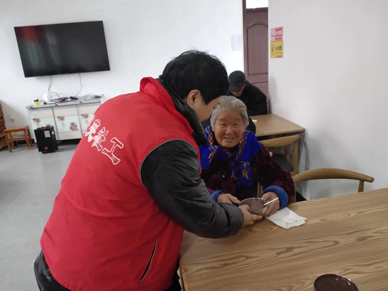 活动中,社工为老年人发放水果和饮品,为老年人端上香甜的腊八粥,热腾腾的水饺。老人们不时地点着头说“谢谢你们了,为我们提供这么丰富的食物”。“大娘,你们吃着开心是对我们最大的肯定”社工回答道。社工与志愿者将一碗碗包含爱意的“腊八粥”“五彩水饺”一一送到老人们手里,并送上节日祝福,祝愿老人们健康长寿。老人们高兴地接过“腊八粥”“五彩水饺”,脸上洋溢着幸福的笑容。