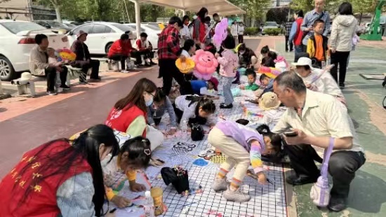 在儿童专区,设置了“我为家园添色彩”百米长卷绘画区域,以及创意风筝、草帽DIY活动。社区的小居民们拿起手中的画笔在长卷绘上可爱的图案,做风筝、绘草帽的孩子们也玩的不亦乐乎。