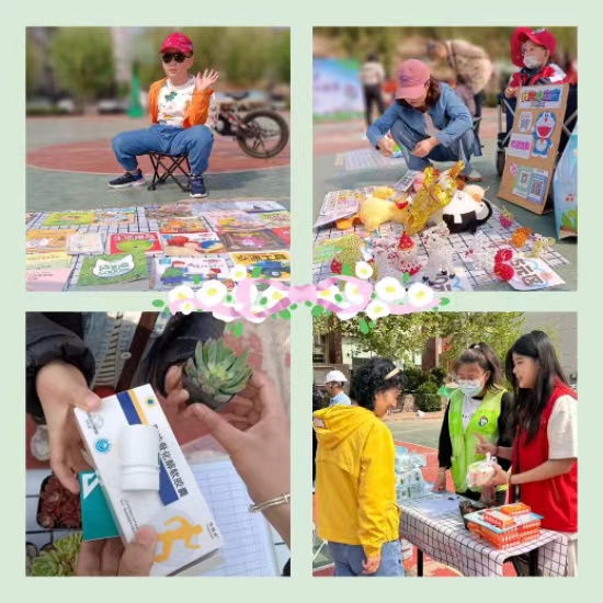 此外,市集还包括了垃圾分类摊位和跳蚤市场摊位。垃圾分类宣传环节,社工通过游戏、互动问答等形式,让居民深入了解垃圾分类的重要性,并通过有害垃圾回收活动,吸引居民将家中的废旧电池、药品等拿到摊位置换绿植,为保护环境献出自己的一份力。跳蚤市场摊位,社区小朋友们将家中看过的书籍、玩具等物品摆到摊位上,以物换物或者其他的形式将旧物送到新主人的手中,让闲置物品换发新生,实现资源的循环利用。