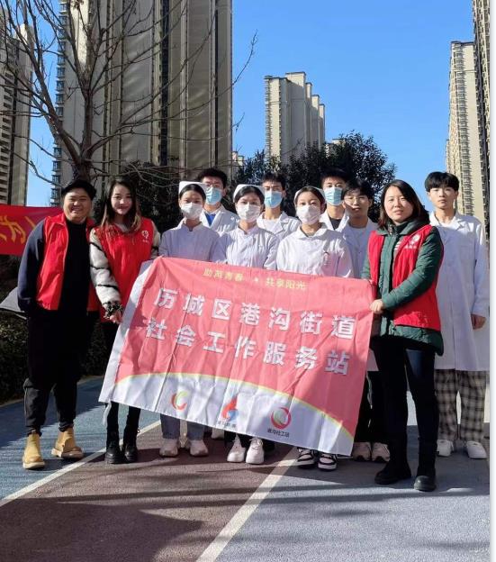 结合前期活动参与居民反馈及需求调研情况,港沟街道社工站敏锐捕捉居民实际需求,发现“义诊”等健康类活动在居民中认可度较高。12月19日,港沟社工站持续开展“健康进社区,义诊在路上”系列活动,联合济南护理职业学院济救侠社团医护志愿者,共同为融创文旅城点翠园社区居民的健康保驾护航。