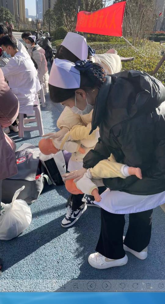 19日上午,社工早早完成义诊活动场地布置、设备检查调试等工作,确保义诊服务的顺利开展。活动现场,社工组织前来参加义诊的居民进行登记,并做好测温消毒等疫情防控工作。医护志愿者们则耐心的为社区中老年居民进行免费测血糖测血压,并给他们讲解健康膳食的重要性,不厌其烦解答各种健康咨询。同时,志愿者对家中有婴幼儿的居民进行海姆立克急救法演示,手把手教大家如何正确操作,社区居民在学习的过程中,纷纷向前亲自尝试,在志愿者的指导下,居民纷纷表示学到了精髓。