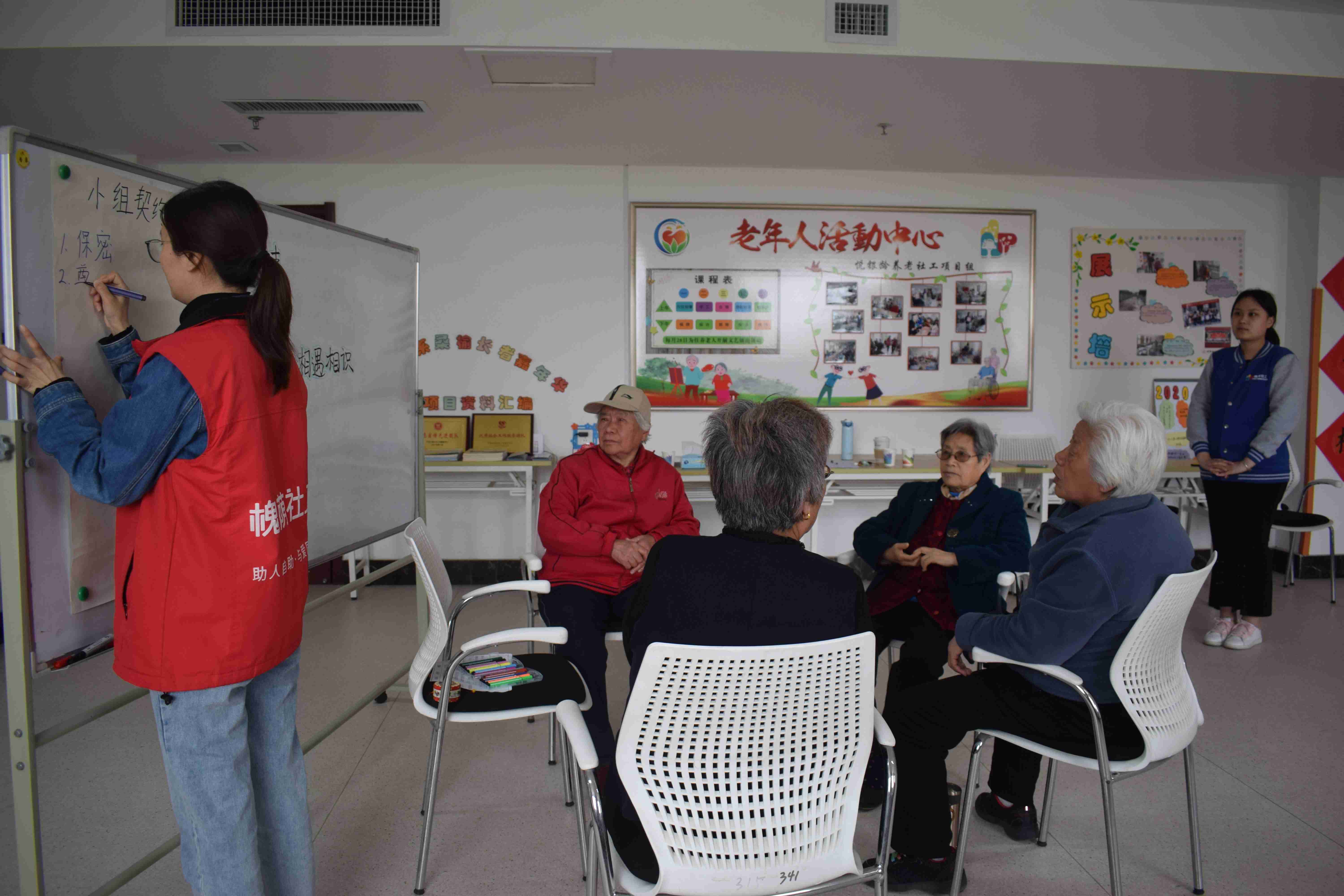 社工招募的小组组员是福利中心有倾诉欲望的患有轻度认知症的住养老人,在与这些老人的相处中,社工不仅需要熟练运用访谈技巧,也要有耐心和时刻保持敏感,纠正他们对自己的污名化解释。