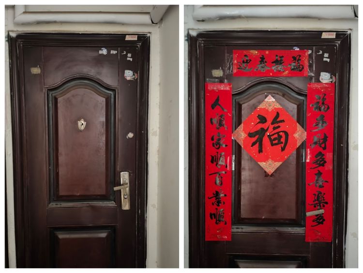 腊月二十八,贴花花把面发。前期,大明湖街道社工站联合街道退役军人志愿服务队、春晖星儿家长支持中心为以老养残民政救助对象困难家庭L家提供卫生清洁志愿服务时,社工站社工与L商定,年前一起贴上春联。2月7日正逢腊月二十八,在春节来临之际,大明湖街道社工站社工敲响L老师家门,贴上了寓意吉祥、幸福的对联,使其感受浓浓的年味和喜庆气氛。