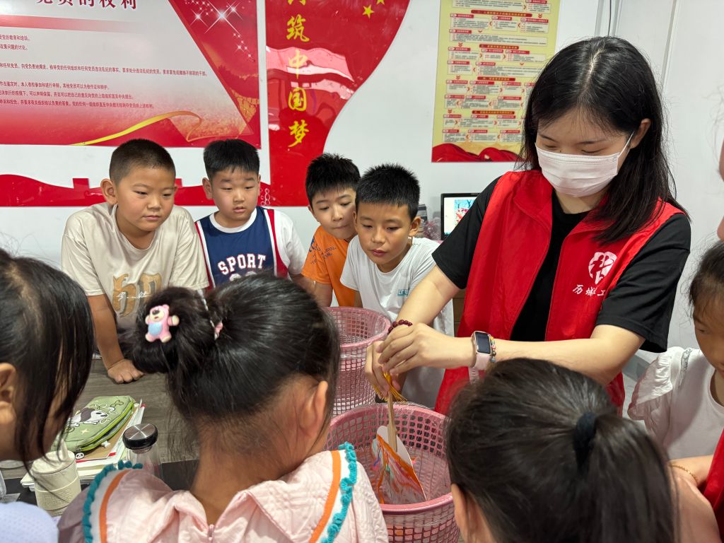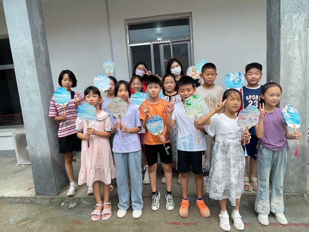 随后,在社工的指导下,孩子们纷纷动手尝试制作漆扇。从挑选颜色、稀释漆料,到将稀释后的漆滴入水中形成美丽的图案,再到将扇面轻轻浸入水中让漆料自然附着,每一步都充满了挑战与乐趣。孩子们尤为兴奋,他们小心翼翼地操作着每一个步骤,生怕破坏了这即将成形的艺术品。在大家的共同努力下,一把把绚丽多彩、各具特色的漆扇逐渐成形,孩子们在实践中感受到了传统文化的魅力。