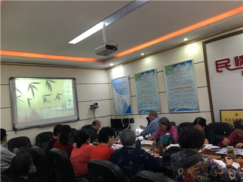 本次活动吸引了五十余位书画协会的成员,场面可以用高朋满座胜友如云来形容,不仅会议室里坐的满满的,就连走廊里都有他们的身影,他们学习的热情真的是如同夏日的骄阳。活动开始后,时校长简单寒暄之后很快地进入了正题,认真的讲解起绘制国画应该掌握的内容和应该注意的事项,并在大屏幕上进行操作,边讲解边操作,也是为了让各成员能够更好的记录和加深印象,而各成员也很认真的记录着重点,时不时的也与周围的人进行简单的交流,互相学习共同进步;活动中间休息之余,也能够听到有人在讨论课上时老师讲的绘画的步骤,是从哪入笔、是先画撇后画捺等等,看得出来他们是打心里喜欢绘制国画。这堂课不仅传授的是书画的知识,更是在传递中国书画的博大精深。